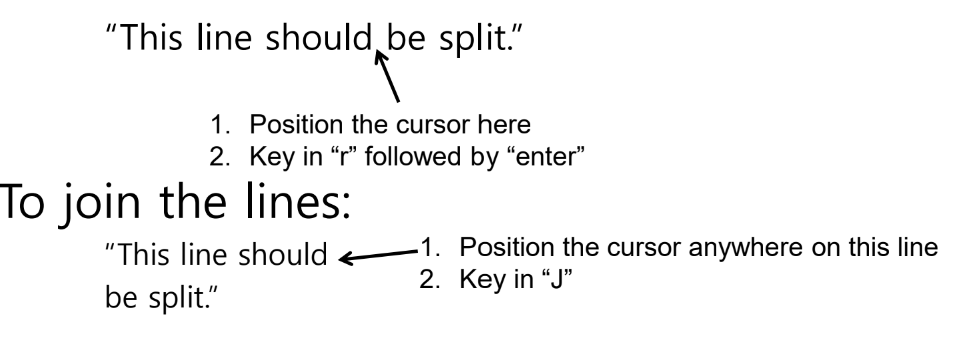 - 커서를 나누고 싶은 위치에 두고 r을 입력 후 엔터를 누릅니다.