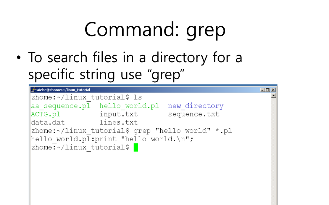 grep 명령어 : 파일에서 특정 문자열을 찾을 때 사용하는 명령어