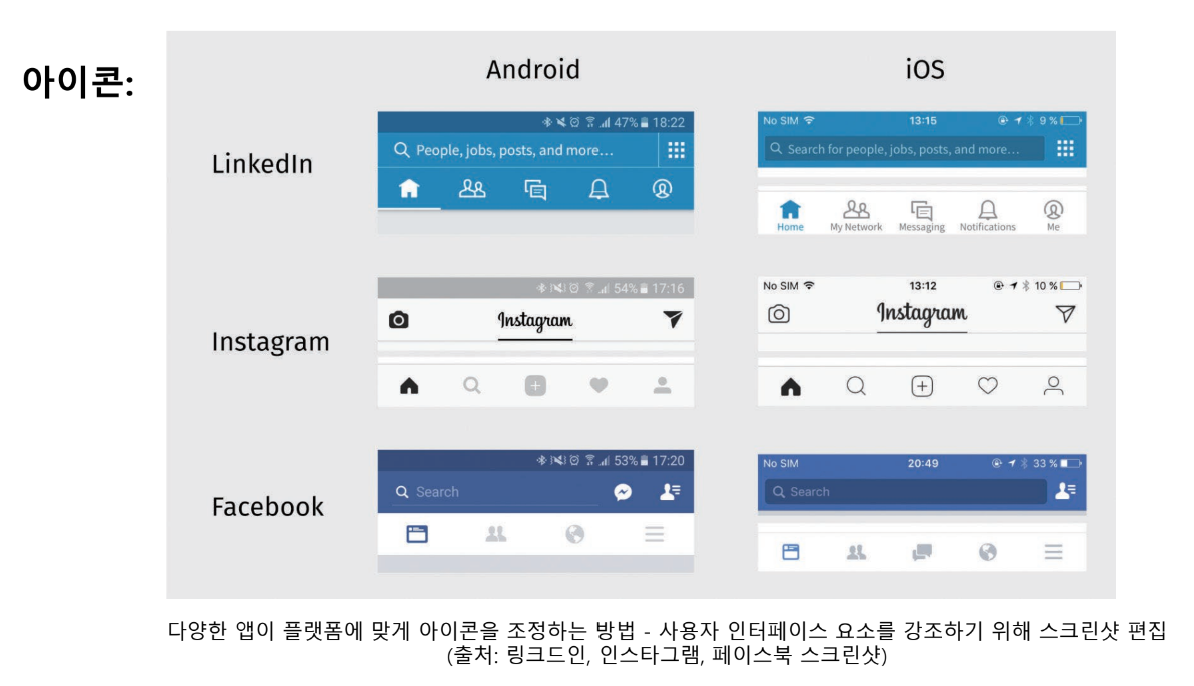 > 사용할 아이콘을 정할 때 각각의 플랫폼에서 가장 효과적인 아이콘을 사용하여 제공하는 것