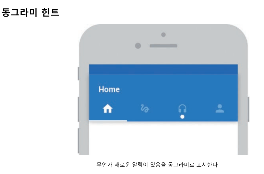 무언가에 변화가 생겼음을 알려주는 동그라미, 이 동그라미는 메뉴 아이템과 탭, 다른 요소 등에서 모두 사용되고 / 만약, 알림을 남발하면 특히, 사용자 관심을 끌지 못하는 컨텐츠에서의 앱의 알림 허용을 취소하는 경우를 각오해야 한다.