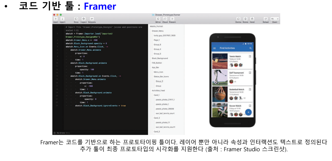 프로그래밍 언어를 사용하여 프로토타입을 정의할 수 있게 해줌 / 이러한 툴은 일부 프로토타이핑 원칙을 채택하여 상태간의 전환 기능을 제공하고 애니메이션을 정의하여 이것을 코드의 일부로 포함시킴