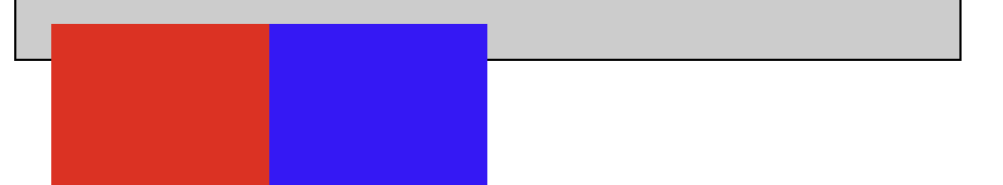 이 특징을 이용하여 블록 성격 요소를 한 줄로 배치가 가능한데, 파란색 요소에도 float 속성을 적용해 빨간색 요소와 마찬가지로 공중에 띄우면 됩니다. 즉, float 속성이 적용된 대상끼리는 서로의 위치를 제대로 인식할 수 있습니다.